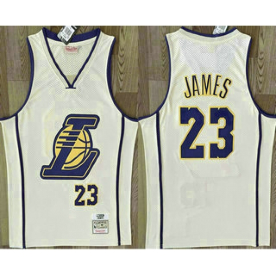 Men's Los Angeles Lakers #23 Lebron James Cream Throwback Swingman Jersey
