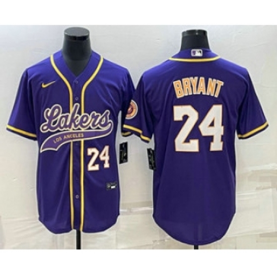 Men's Los Angeles Lakers #24 Kobe Bryant Number Purple With Cool Base Stitched Baseball Jersey
