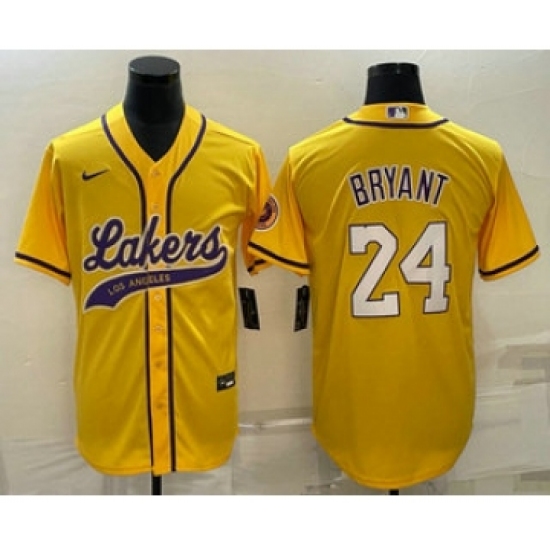 Men's Los Angeles Lakers #24 Kobe Bryant Yellow Stitched Flex Base Nike Baseball Jersey