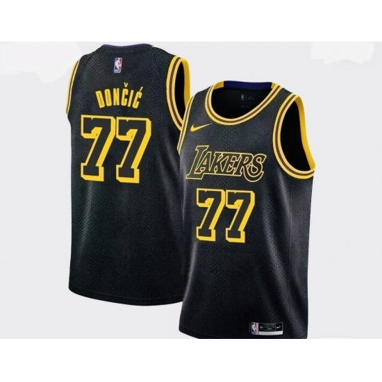 >Men's Los Angeles Lakers #77 Luka Doncic Black Stitched Jersey