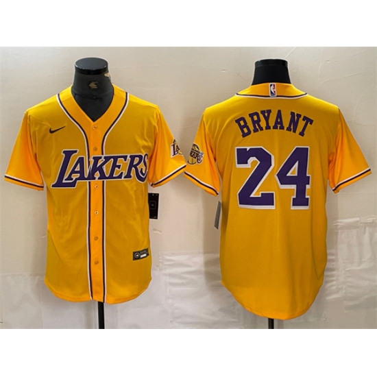 Men's Los Angeles Lakers Front #24 Kobe Bryant Gold Cool Base Stitched Baseball Jersey