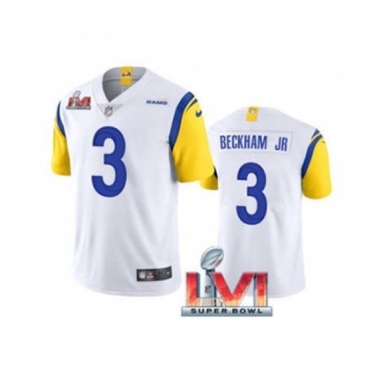 >Men's Los Angeles Rams #3 Odell Beckham Jr. White 2022 Super Bowl LVI Vapor Limited Stitched Jersey
