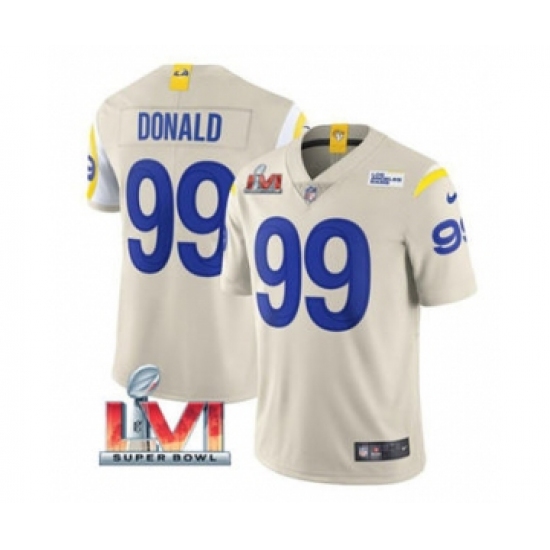>Men's Los Angeles Rams #99 Aaron Donald Bone 2022 Super Bowl LVI Vapor Limited Stitched Jersey