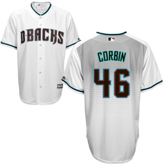 Home>MLB>Arizona Diamondbacks>Patrick Corbin>Men's Majestic Arizona Diamondbacks #46 Patrick Corbin Authentic White/Capri Cool Base MLB Jersey