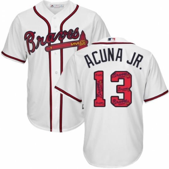 Men's Majestic Atlanta Braves #13 Ronald Acuna Jr. Authentic White Team Logo Fashion Cool Base MLB Jersey
