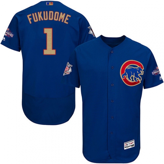 Men's Majestic Chicago Cubs #1 Kosuke Fukudome Authentic Royal Blue 2017 Gold Champion Flex Base MLB Jersey