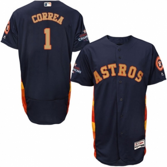 >Men's Majestic Houston Astros #1 Carlos Correa Navy Blue Alternate 2018 Gold Program Flex Base Authentic Collection MLB Jersey