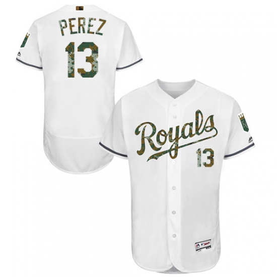 Men's Majestic Kansas City Royals #13 Salvador Perez Authentic White 2016 Memorial Day Fashion Flex Base MLB Jersey