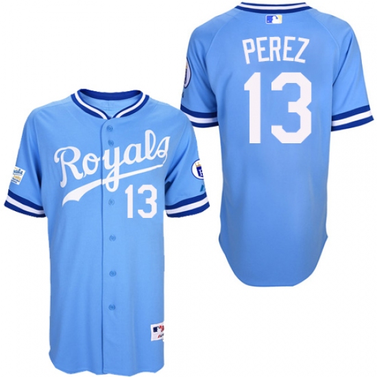 Men's Majestic Kansas City Royals #13 Salvador Perez Replica Light Blue 1985 Turn Back The Clock MLB Jersey