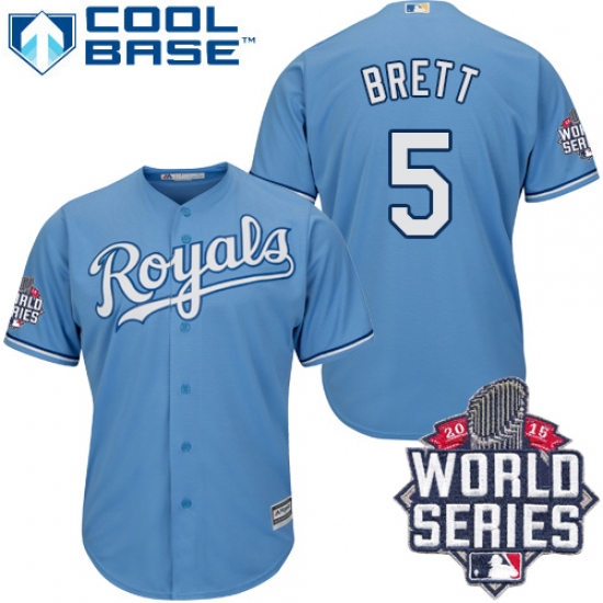 Home>MLB>Kansas City Royals>George Brett>Men's Majestic Kansas City Royals #5 George Brett Replica Light Blue Alternate 1 Cool Base 2015 World Series Patch MLB Jersey