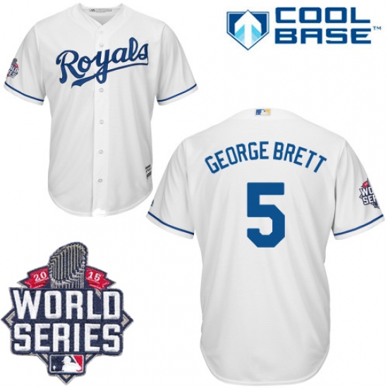 Home>MLB>Kansas City Royals>George Brett>Men's Majestic Kansas City Royals #5 George Brett Replica White Home Cool Base 2015 World Series Patch MLB Jersey