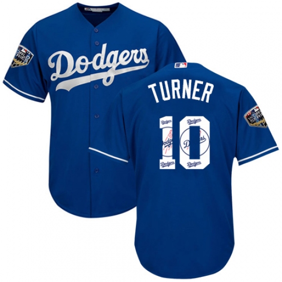 Men's Majestic Los Angeles Dodgers #10 Justin Turner Authentic Royal Blue Team Logo Fashion Cool Base 2018 World Series MLB Jersey