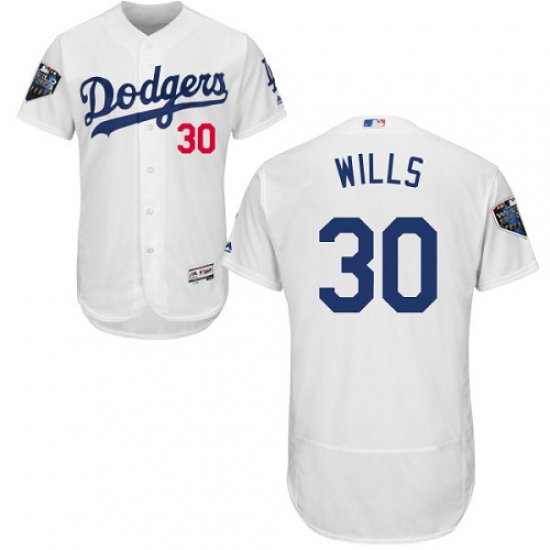 >Men's Majestic Los Angeles Dodgers #30 Maury Wills White Home Flex Base Authentic Collection 2018 World Series MLB Jersey