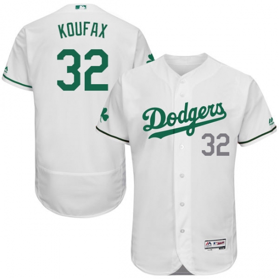 Home>MLB>Los Angeles Dodgers>Sandy Koufax>Men's Majestic Los Angeles Dodgers #32 Sandy Koufax White Celtic Flexbase Authentic Collection MLB Jersey