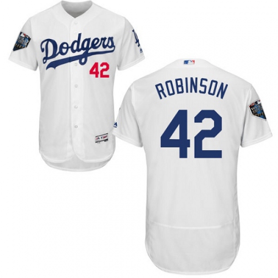 Men's Majestic Los Angeles Dodgers #42 Jackie Robinson White Home Flex Base Authentic Collection 2018 World Series MLB Jersey