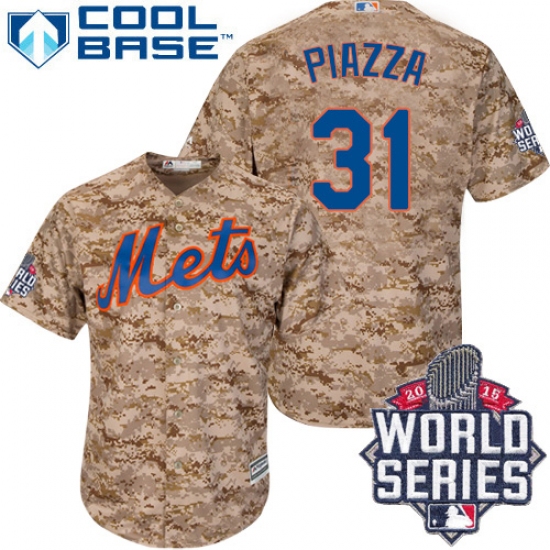 Men's Majestic New York Mets #31 Mike Piazza Replica Camo Alternate Cool Base 2015 World Series MLB Jersey