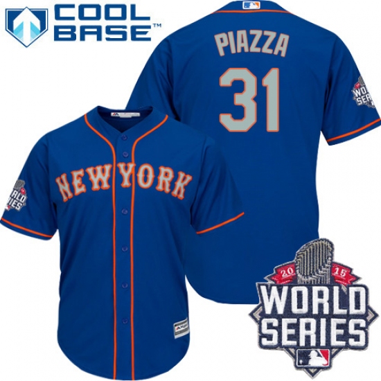 Men's Majestic New York Mets #31 Mike Piazza Replica Royal Blue Alternate Road Cool Base 2015 World Series MLB Jersey