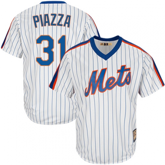 Men's Majestic New York Mets #31 Mike Piazza Replica White Cooperstown MLB Jersey