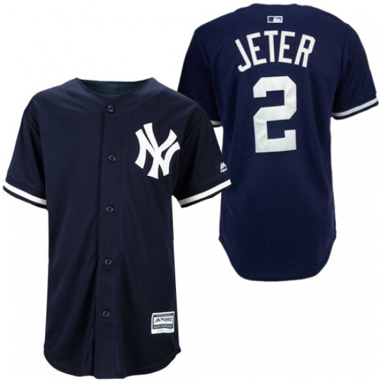 Men's Majestic New York Yankees #2 Derek Jeter Replica Navy Blue MLB Jersey