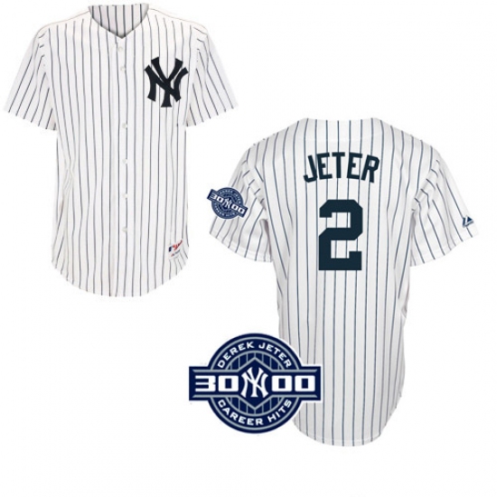Men's Majestic New York Yankees #2 Derek Jeter Replica White W/3000 Hits Patch(Have Player Name on Back) MLB Jersey