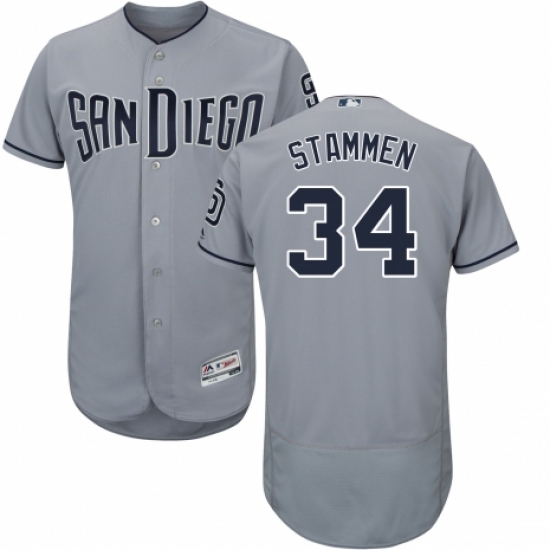 Men's Majestic San Diego Padres #34 Craig Stammen Replica Grey Road Cool Base MLB Jersey