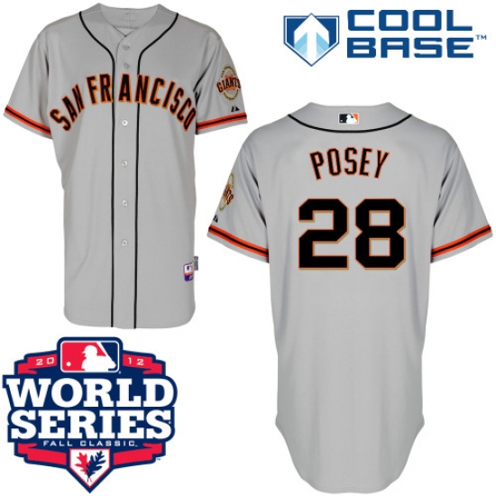 Men's Majestic San Francisco Giants #28 Buster Posey Replica Grey Cool Base 2012 World Series Patch MLB Jersey