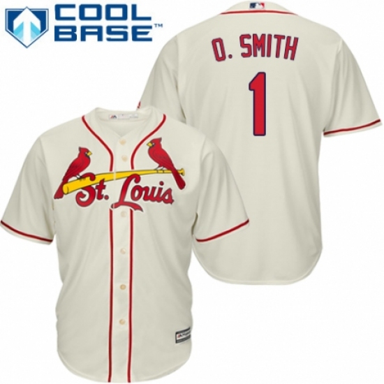 Men's Majestic St. Louis Cardinals #1 Ozzie Smith Replica Cream Alternate Cool Base MLB Jersey