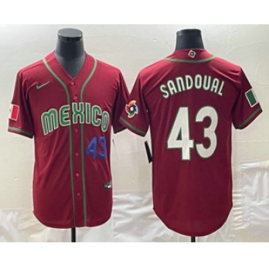 >Mens Mexico Baseball #43 Patrick Sandoval Number 2023 Red World Classic Stitched Jersey