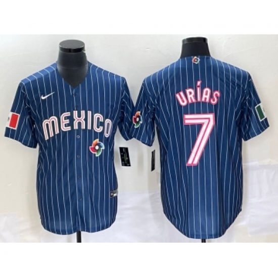 >Men's Mexico Baseball #7 Julio Urias Navy Blue Pinstripe 2020 World Series Cool Base Nike Jersey 1