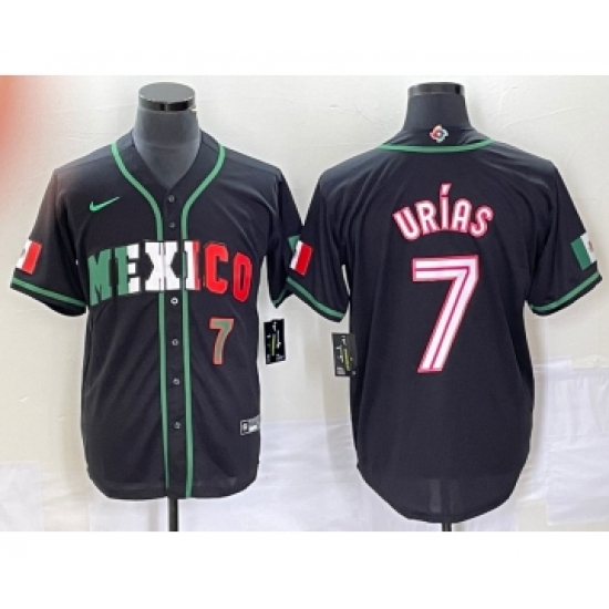 >Men's Mexico Baseball #7 Julio Urias Number 2023 Black White World Classic Stitched Jersey3