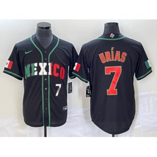 >Men's Mexico Baseball #7 Julio Urias Number 2023 Black World Baseball Classic Stitched Jersey6