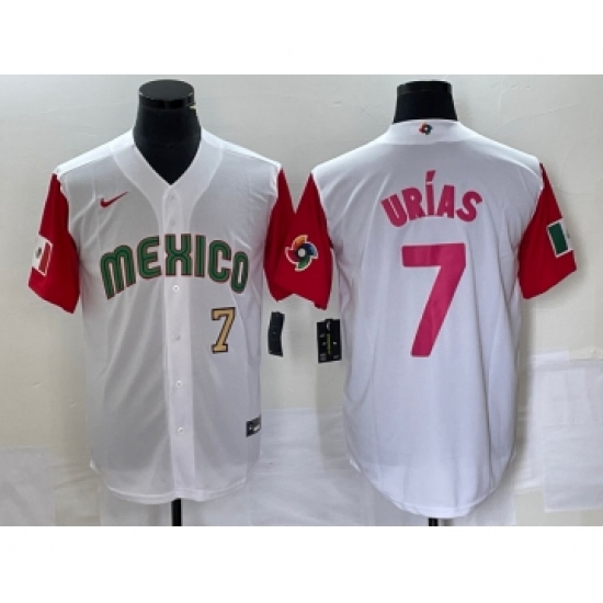 Men's Mexico Baseball #7 Julio Urias Number 2023 White Red World Classic Stitched Jersey20