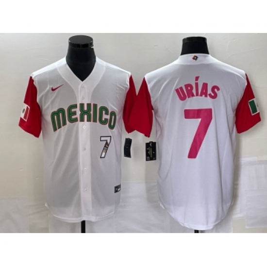 Men's Mexico Baseball #7 Julio Urias 2023 White World Baseball Classic Stitched Jersey