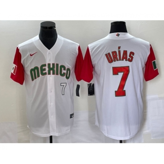 Men's Mexico Baseball #7 Julio Urias Number 2023 White Red World Classic Stitched Jersey21