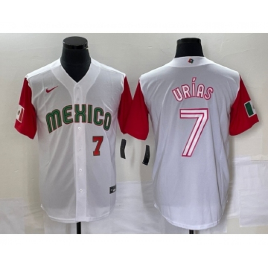 Men's Mexico Baseball #7 Julio Urias Number 2023 White Red World Classic Stitched Jersey42