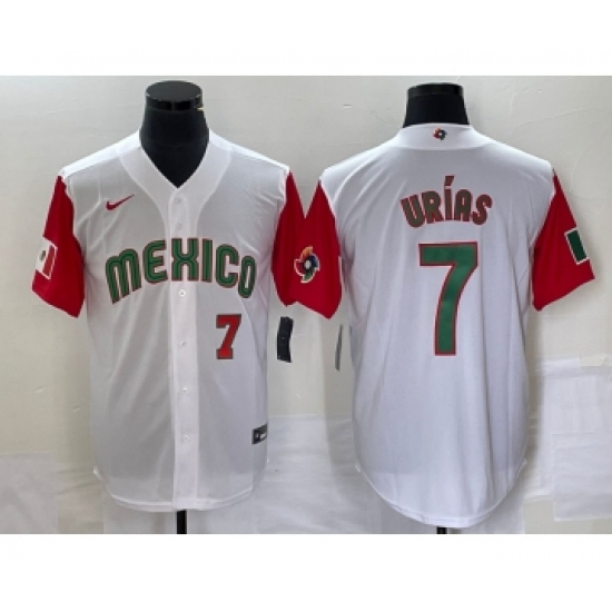 Men's Mexico Baseball #7 Julio Urias Number 2023 White Red World Classic Stitched Jersey42