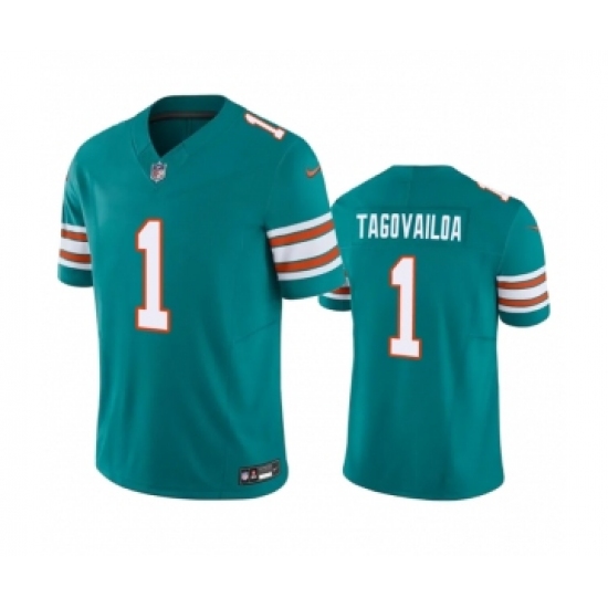 Men's Miami Dolphins #1 Tua Tagovailoa Aqua 2023 F.U.S.E Vapor Limited Stitched Football Jersey