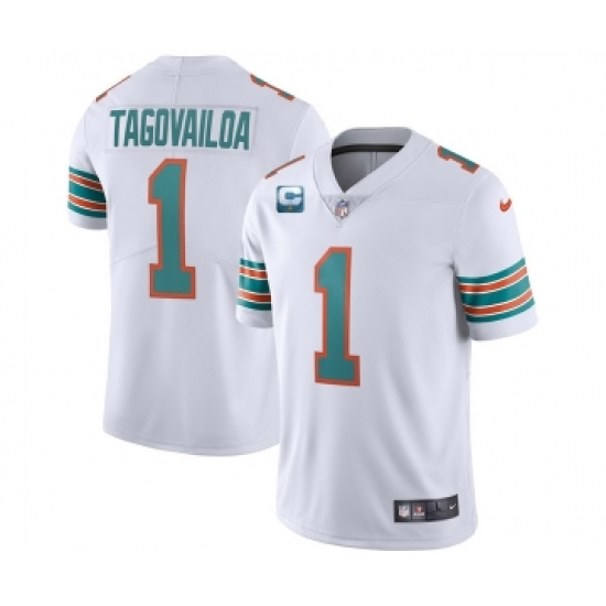 Men's Miami Dolphins 2022 #1 Tua Tagovailoa White With 1-star C Patch Stitched Jersey