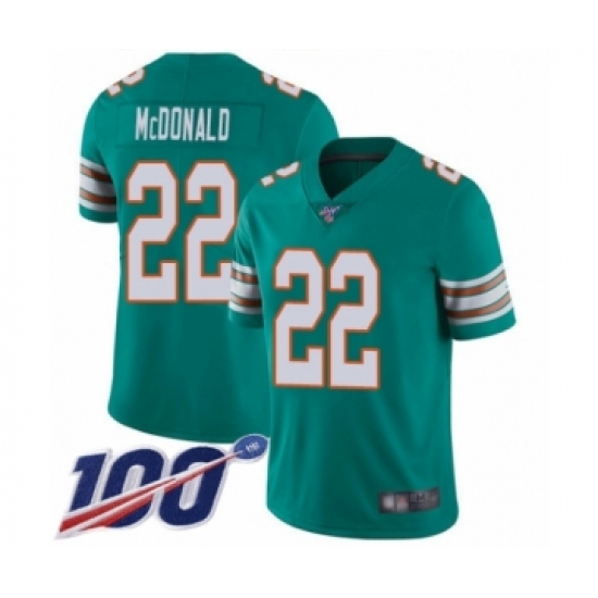 Men's Miami Dolphins #22 T.J. McDonald Aqua Green Alternate Vapor Untouchable Limited Player 100th Season Football Jersey