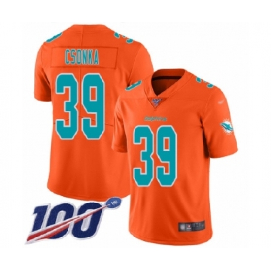 >Men's Miami Dolphins #39 Larry Csonka Limited Orange Inverted Legend 100th Season Football Jersey