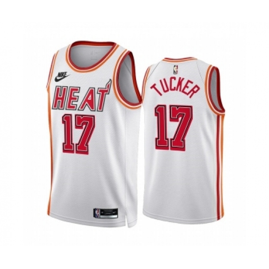 >Men's Miami Heat #17 P.J. Tucker White Classic Edition Stitched Basketball Jersey