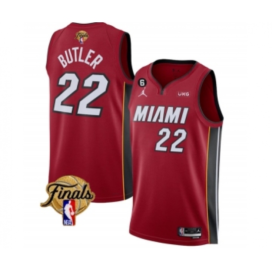 Men's Miami Heat #22 Jimmy Butler Red 2023 Finals Statement Edition With NO.6 Stitched Basketball Jersey
