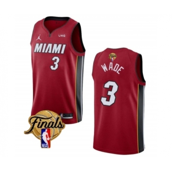 Men's Miami Heat #3 Dwyane Wade Red 2023 Finals Statement Edition Stitched Basketball Jersey