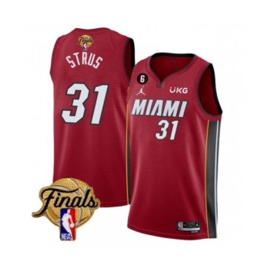 Men's Miami Heat #31 Max Strus Red 2023 Finals Statement Edition With NO.6 Stitched Basketball Jersey