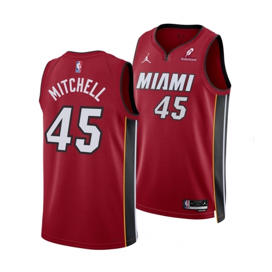>Men's Miami Heat #45 Davion Mitchell Red 2025 Statement Edition Swingman Stitched Basketball Jersey