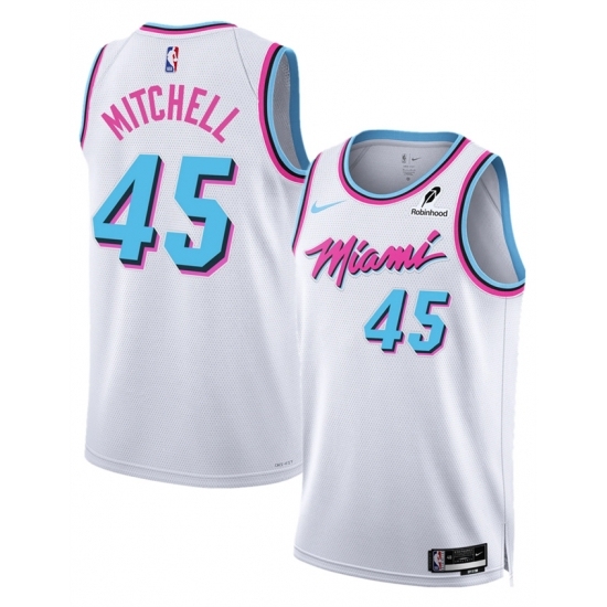 Men's Miami Heat #45 Davion Mitchell White 2025 City Edition Stitched Basketball Jersey
