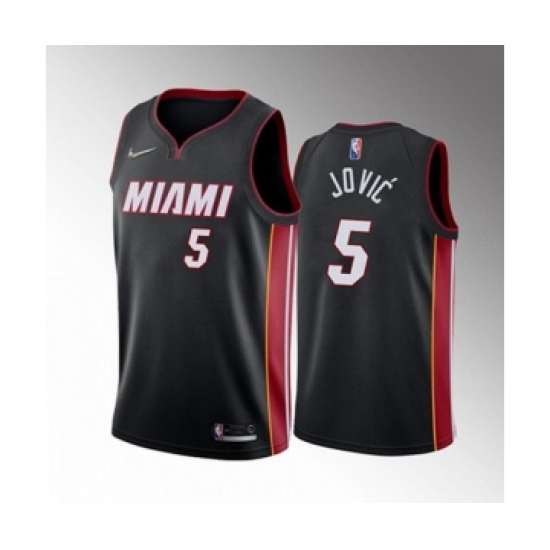 Men's Miami Heat #5 Nikola Jovic 2022 Black Icon Edition 75th Anniversary Stitched Basketball Jersey