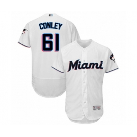 >Men's Miami Marlins #61 Adam Conley White Home Flex Base Authentic Collection Baseball Player Jersey