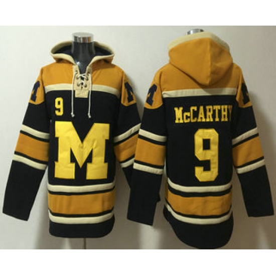 Men's Michigan Wolverines #9 JJ McCarthy Navy Blue Ageless Must Have Lace Up Pullover Hoodie