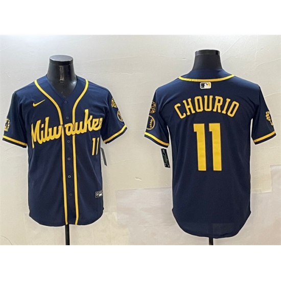 Men's Milwaukee Brewers #11 Jackson Chourio Navy With Home Limited Stitched Baseball Jersey